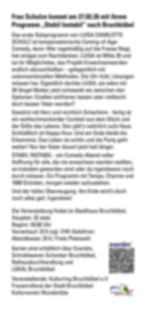 In Kooperation mit dem Kulturring Bruchköbel e.V. und dem Frauenreferat der Stadt Bruchköbel freuen wir uns auf die